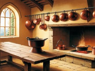 Větší středověká sídla měla zpravidla kuchyni zcela mimo obytnou oblast. Kuchyni byly mnohdy umístěny na úplně jiném podlaží, ve sklepní části domu, kde nehrozilo, že kouř a dým z vaření zaplní celý dům a znemožní tak jeho obyvatelům volně dýchat v obytných místnostech nebo přijímacích salonech. Dům totiž ve středověku sloužil nejen soukromým, ale často i oficiálním účelům. Kanceláře v dnešním slova smyslu neexistovaly a všechno se tak odehrávalo na jednom místě. Chudší obyvatelé středověkých vesnic a měst se museli spokojit s jednou. A jejich domy podle toho také vypadaly. Byly mnohem menší, jednopodlažní a zpravidla v nich více místností nebylo, pouze jedna centrální.